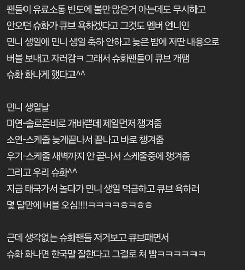 수진이가 탈퇴하고 슈화가 많이 힘들어했나봐