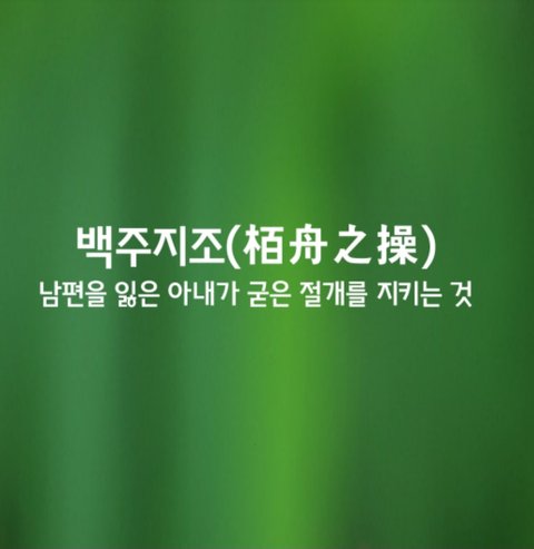 백주(栢舟)라는 시를 지어 맹세(盟誓)하고 절개(節槪ᆞ節介)를 지킨다는 뜻으로,남편(男便)이 일찍 죽은 아내가 절개(節槪ᆞ節介)를 지키는 것을 의미(意味), 공백(共伯)의 아내가 공강(共姜)이 백주(栢舟)라는 시를 지어 맹세(盟誓)하고 절개(節槪ᆞ節介)를 지킨 고사(古事)에서 유래(由來)출처: http://hongdaearea.blogspot.com/2025/10/blog-post_82.html