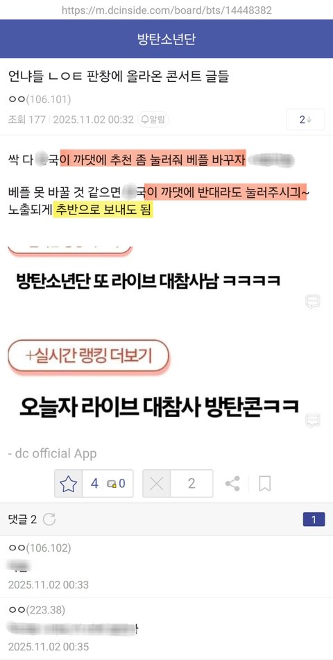 그룹이 까이면 정화는 못할망정 갤망구 ㅈㄱ한테 미쳐서 베플 다 조작해 놓은 꼬라지 봐