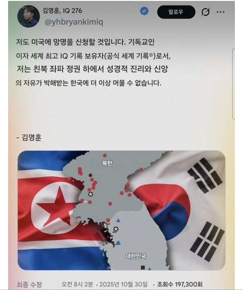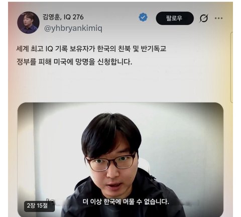 아이큐세계1위 한국인 미국으로 망명신청