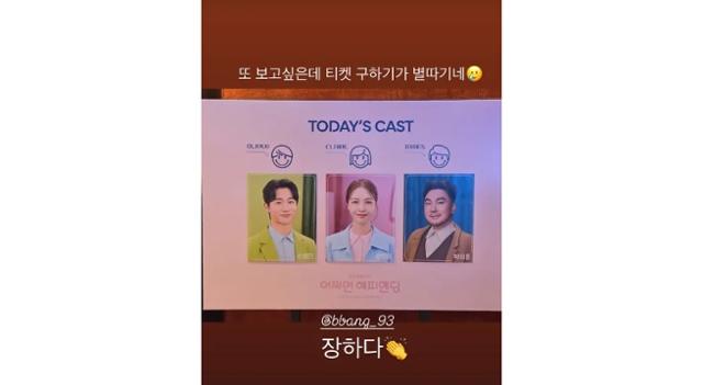 온주완은 1일 자신의 SNS에 방민아가 출연 중인 뮤지컬 '어쩌면 해피엔딩' 공연장을 방문한 사진을 공개하며 예비신부인 방민아에 대한 응원을 전했다. 먼저 온주완은 '어쩌면 해피엔딩'에 대해 "너무나 사랑스러운 극이다"라면서 "또 보고 싶은데 티켓 구하기가 별따기. 장하다"라면서 공개적으로 애정을 표현했다.