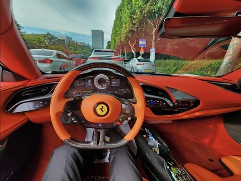 (사진1 설명) ferrari(퍼라리, 이탈리아의 고급 스포츠카) <(원판 사진 resize) 촬영정보: 셔터속도 1/120s, 초점거리 13mm, 조리개 f2.2, 촬영감도 ISO 80, 노출 biasing(바이어싱, Q·point(동작점) 설정) 0.0ev, 삼성 Galaxy S22 Ultra 휴대폰 카메라 사용, 최대우 촬영>