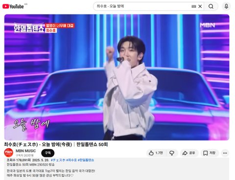 (사진4 설명) 최수호(チェスホ) - 오늘 밤에(今夜)|한일톱텐쇼 50회