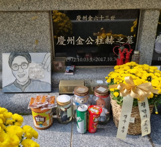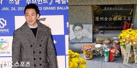 배우 한정수가 절친이었던 고(故) 김주혁의 묘소를 찾아 고인을 추억했다. / 사진 = 천정환 기자, SNS