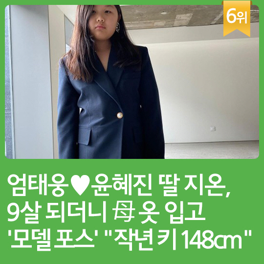 6위 : 엄태웅♥윤혜진 딸 지온, 9살 되더니 母 옷 입고 '모델 포스' "작년 키 148cm"