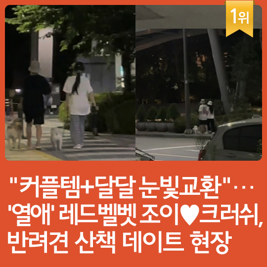 1위 : "커플템+달달 눈빛교환"…'열애' 레드벨벳 조이♥크러쉬, 반려견 산책 데이트 현장