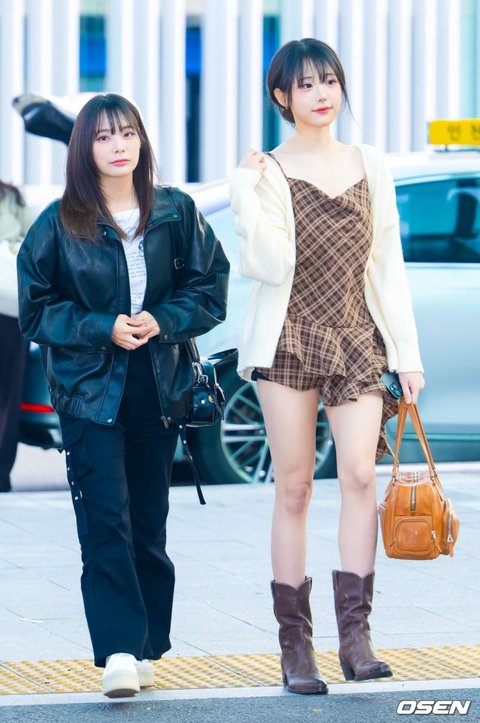 QWER 시연과 히나가 출국길에 포즈를 취하고 있다. 2025.10.30 / rumi@osen.co.kr