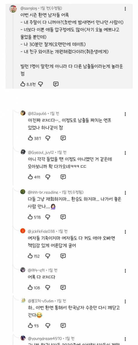 현재 여론 살벌한 환승연애 이번 시즌 남출 어록