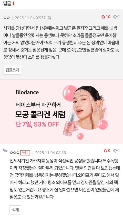 제 동생도 이런 집분위기때문에 그냥 자기가 나간다고 말했는데 와이프는 차라리 저보고 나가라고 했습니다.동생앞에서