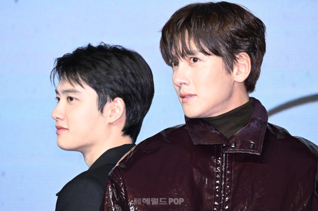 도경수, 지창욱/사진=윤병찬 기자지창욱은 “굉장히 다양한 액션들이 나오기 때문에 저에겐 또 하나의 재미였던 것 같다. 스테이지가 넘어간다 생각했고, 무술 감독님과 니짜 이야기를 많이 나누고 회의를 많이 했던 것 같다”고 말했다. 도경수는 “(태중과)반대로 사람을 어떻게 처절하고 잔인하게 바로 죽일 수 있을까(생각하는 인물이었다). 무술감독님과 이야기를 많이 하며 액션을 짰던 것 같다”고 전했다.