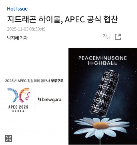 지디 하이볼도 apec에 공식 협찬됨 홍보대사 권력 미쳤어