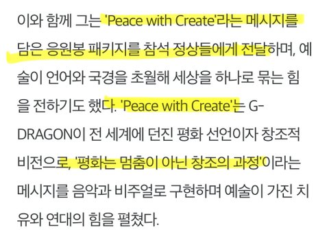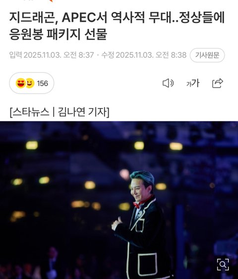 정부에서 지디한테 에이팩 만찬 메인 공연 전권 넘쳐서 공연 때 미디어 아트 배경도 지디 데이지랑 얼굴 영상 나옴