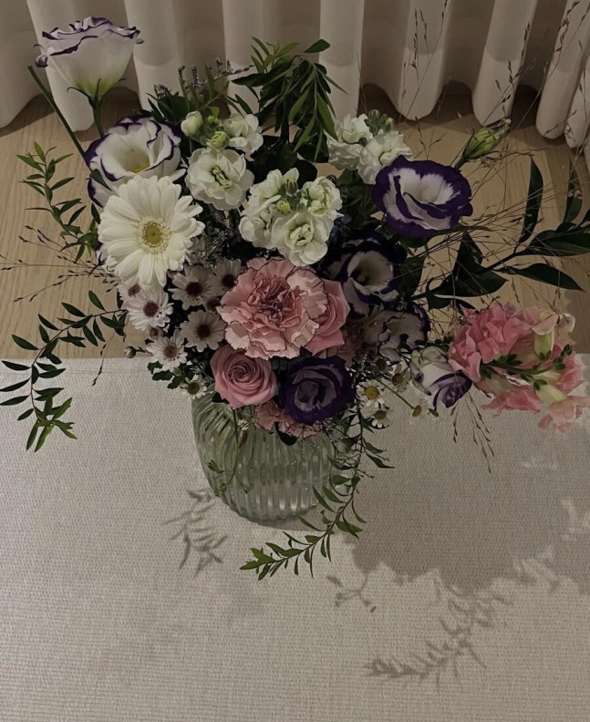공개된 사진에는 유리 화병에 풍성한 꽃이 담겨있다. 사진 한 장의 게시물이었지만 이는 고민시가 지난 8월 30일 학교 폭력 의혹에 대한 솔직한 심경을 털어놓은 후 첫 게시물이었기에 많은 관심이 모였다.