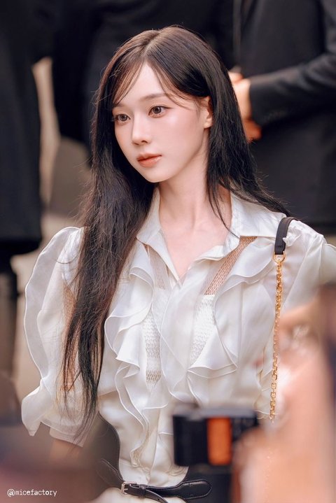 이날 묶은 듯 자연스럽게 흘러내리는 로우 번 헤어스타일과 시스루 뱅도