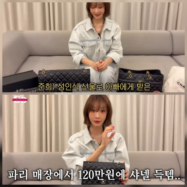 고준희가 20년 전 아버지에게 선물받은 첫 샤넬백의 사연을 전했다.사진=고준희 유튜브 채널
