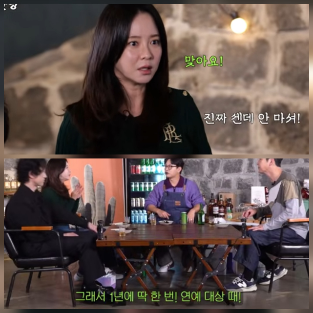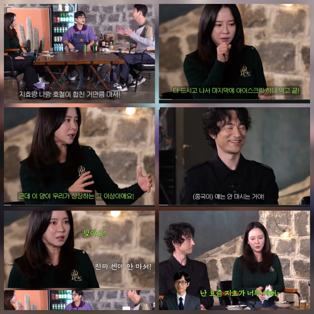 이에 신동엽은 런닝맨 멤버들의 술 버릇을 언급했다. “그 팀은 이상하게 술 못 마시는 멤버가 많다. 재석이 못 마시고, 지석진 형도 못 마신다. 근데 (김)종국이는 다르다. 지효, 나, (정)호철이를 합쳐도 종국이가 더 마신다”고 말했다.송지효도 고개를 끄덕이며 “(김종국은) 1년에 한 번, 연예대상 때만 술을 마신다. 그때 소주랑 물만 먹고 아이스크림 하나 먹고 끝난다. 그런데 그 양이 상상 이상이다”고 덧붙였다.