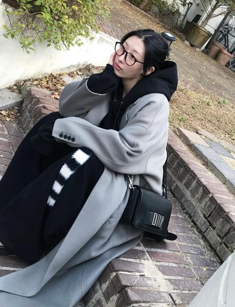 커다란 원형 안경 너머로 보이는 무표정한 얼굴, 지그시 턱을 괸 손끝마다 나른한 감정이 고스란히 스몄다. 블랙 앤 화이트 체크 무늬 머플러, 무게를 더하는 블랙 숄더백까지, 의상과 소품 모두 쓸쓸한 계절의 정취와 절묘하게 어울렸다. 낙엽이 흩날리는 외딴 골목 한켠, 차분하게 정돈된 공간은 그저 조용한 일상 같으면서도 배우 류다인의 내면 풍경을 드리운다.