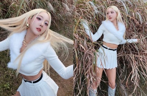 이날 공개된 사진에는 금발 머리의 바다가 갈대밭에서 포즈를 취하고 있는 모습이 담겼다. 바다는 털로 장식된 짧은 길이의 흰 상의와 함께 흰 치마를 맞춰 입었다. 또 은색의 빛나는 부츠를 신어 눈길을 끌었다. 화려한 금빛 귀걸이와 목걸이 역시 시선을 집중시켰다.