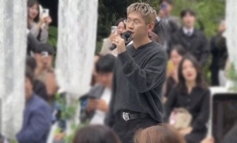 가수 크러쉬가 연인 레드벨벳 조이의 여동생 결혼식에서 축가를 부른 것으로 알려졌다. 사진은 조이의 여동생 결혼식장에서 축가 부르는 가수 크러쉬 모습. /사진=온라인커뮤니티가수 크러쉬가 여자친구인 레드벨벳 멤버 조이의 여동생 결혼식에서 축가를 맡은 것으로 알려졌다.
