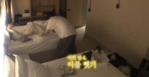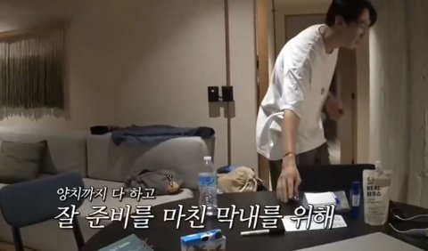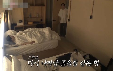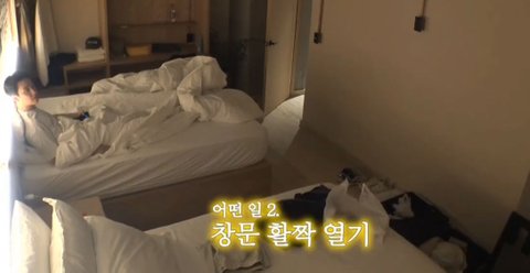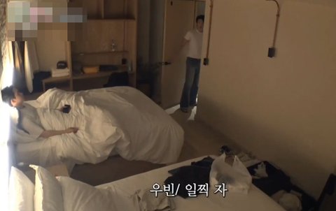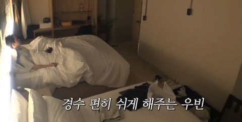 시차도 엉망이고 여행다니느라 피곤해하는 동생 일찍 자라고 불꺼주는 스윗우빈 ㅠㅠ