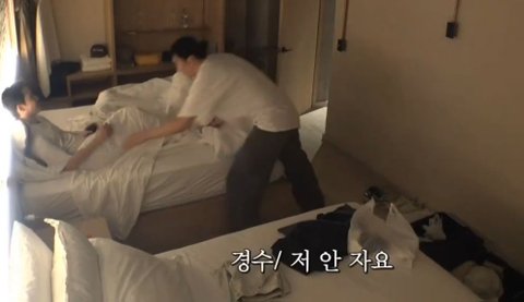 그렇게 여행와서 일찍 자는거 용납 못하는 이광수가 건 도경수 vs 이광수 싸움