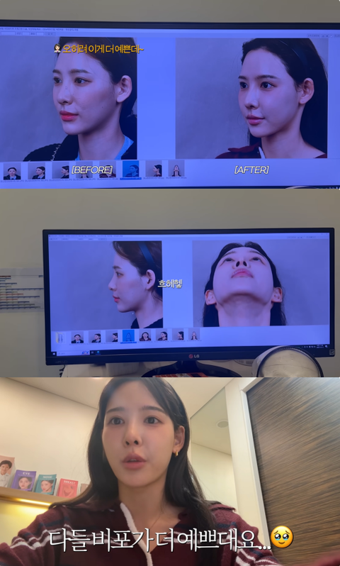 이어 “원래 코 수술 전에는 어려보이는 얼굴이었다. 코가 둥근 편이었다. 코 수술 후 이렇게 인상이 많이 바뀔 줄 몰랐다. 그래도 지금이 더 예쁘긴 하다. 코를 다시 복원하면 다시 동글동글 할 것”이라고 말했다.