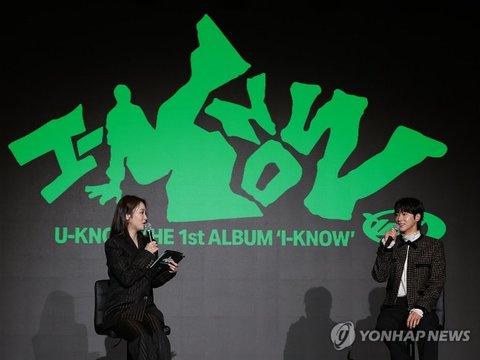 (서울=연합뉴스) 강민지 기자 = 가수 유노윤호가 5일 서울 송파구 소피텔 앰배서더 서울 호텔에서 열린 정규 1집 '아이-노우(I-KNOW)' 발매 기자간담회를 하고 있다. 왼쪽은 아나운서 신아영. 2025.11.5