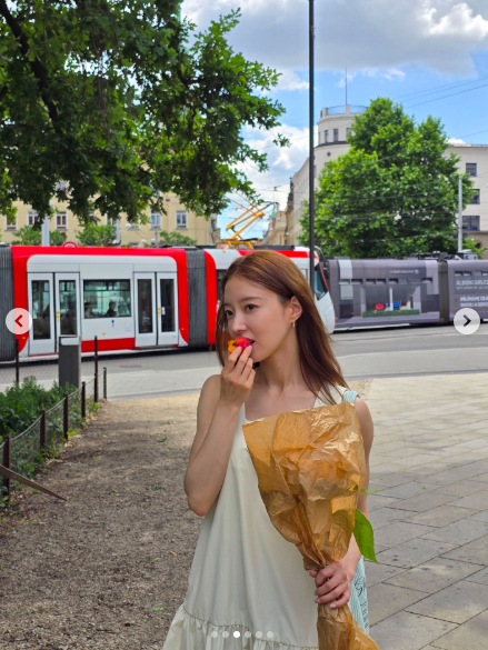 사진 속 이세영은 청바지에 민소매를 매치해 케이크를 한 손에 들고 환한 미소를 띄우고 있다. 야외 의자에 앉아 아이스크림을 먹거나 길거리에서 과일을 먹는 등 자연스러운 포즈로 화보 같은 일상을 전한 모습이다.