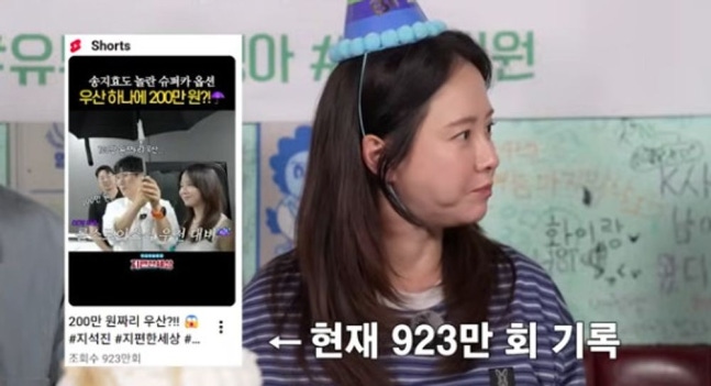 이어 지석진은 자신의 채널에 송지효가 출연한 편을 언급하며 제작진을 향해 “제 채널에 지효가 슈퍼카 탄 것 보셨나. 거기 댓글에 1400개 중에 1300개가 지효 예쁘다라는 내용이다”라고 강조했다.