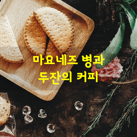 마요네즈 병과 두잔의 커피