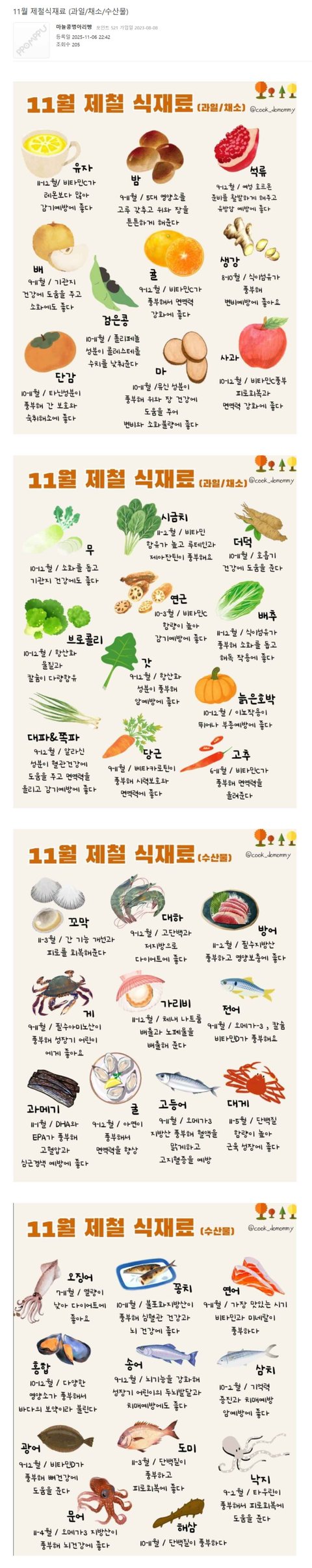 11월 제철식재료 (과일/채소/수산물)