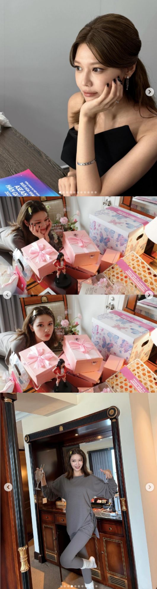 이어 또 다른 컷에서는 베트남 전통 모자 논라을 착용한 채 거울셀카를 찍거나 팬들이 선물한 물건들을 하나씩 열어보는 등 행복한 시간을 보냈다.