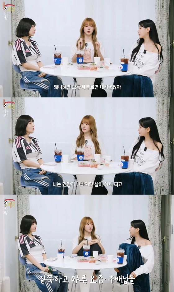 그룹 에이핑크 하영은 연예계 절친인 예린과 그룹 레드벨벳 조이와 만났다. 이들은 몸매 관리에 대한 이야기를 나눴다.