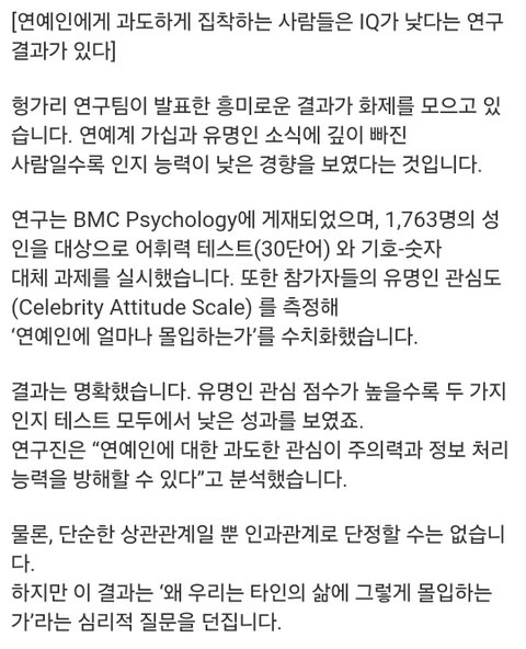 연예인에 집착할수록 IQ 낮다는 연구결과ㅋㅋ