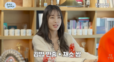 그는 “아침에 김밥 반 줄을 쌈에 싸서 먹었다. 쌈으로 먹으면 반 줄만 먹어도 한 줄 먹은 느낌이 난다. 포만감은 유지하면서도 양을 줄일 수 있다”며 “마음의 효과”라고 웃으며 말했다. 그러면서 “신원호 감독님이 ‘왜 나랑 작품 끝나면 다 다이어트하냐’고 하시더라”고 덧붙였다.