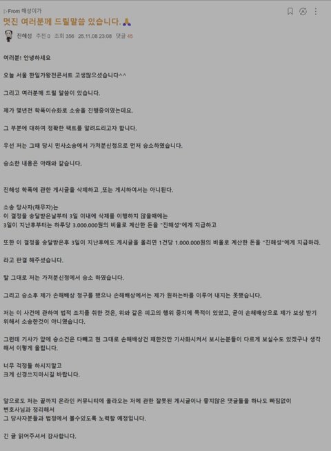패소건에 대한 본인의 입장