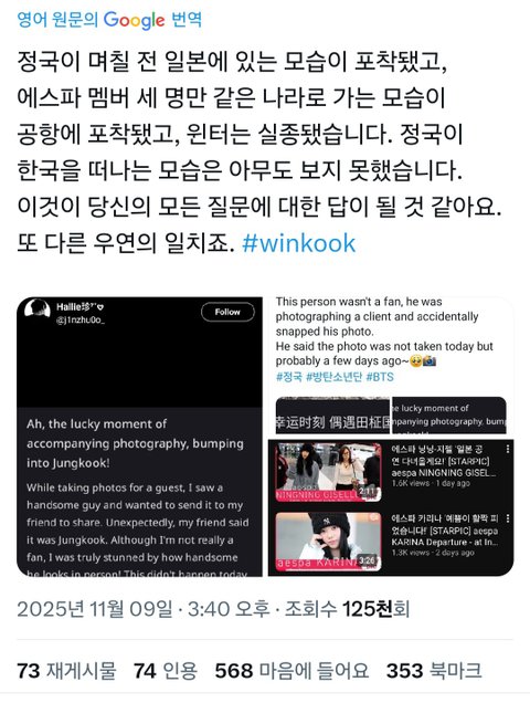 외국팬들은 정국 윈터 진짜라고 믿나봐