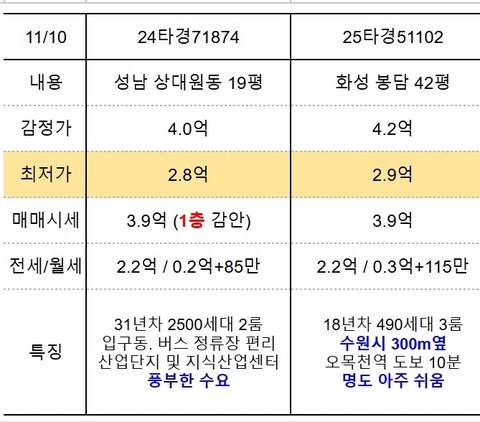 둘다 매력있지만 경매 경쟁률이나 여러면에서