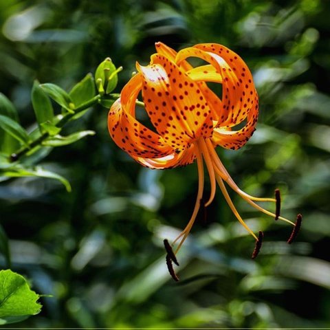 나리 중 유일하게 잎겨드랑이에 검은 구슬 같은 주아(=씨앗은 아니고 어미와 꼭 닮은 비늘줄기입니다.)가 있는 것이 참나리입니다.