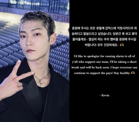 케빈은 10일 개인 계정에 "응원해주시는 모든 분들께 갑작스레 걱정시켜드려 죄송하다"고 전했다.