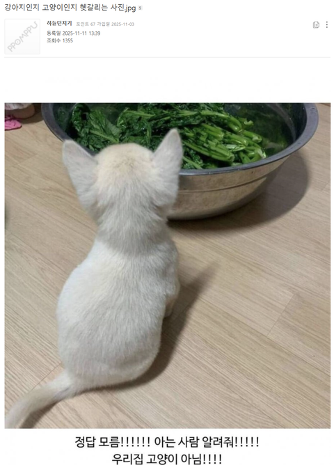 강아지 래요! 저도 고양이인줄 알았는데