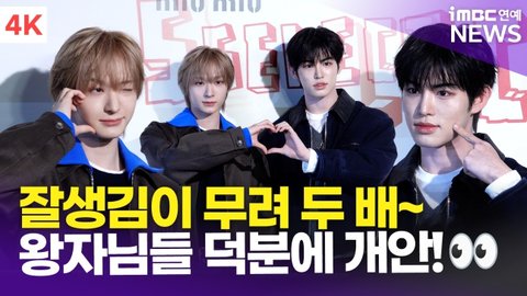 그룹 킥플립(KickFlip) 민제, 동화가 11월 11일 오후 서울 강남구 압구정로 한 플래그십 스토어에서 열린 패션 브랜드 셀렉트 오픈 행사에 자리해 포즈를 취하고 있다.