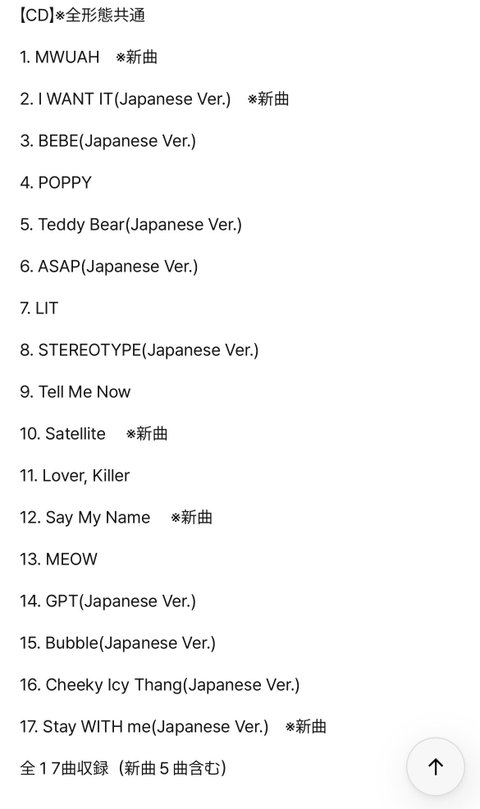 https://twitter.com/STAYC_JP/status/1988170154371674197?s=20 총 17곡이 수록되고 그중 5곡이 신곡이며 그중 3곡이 일본 오리지널이다.