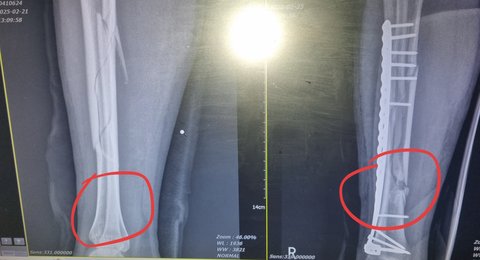 의사는 무릎 쪽으로 금속정을 삽입해 뼈를 고정하려 했으나,삽입 과정에서 경골이 으스러졌습니다.그는 금속정을 제거하고, 뼈 옆에 금속판을 대고 나사로 고정하는 방식으로 수술 방법을 변경했습니다.만약 수술이 정상적으로 끝났다면 저는 문제 삼지 않았을 것입니다.하지만 이후 상황은 그렇지 않았습니다.