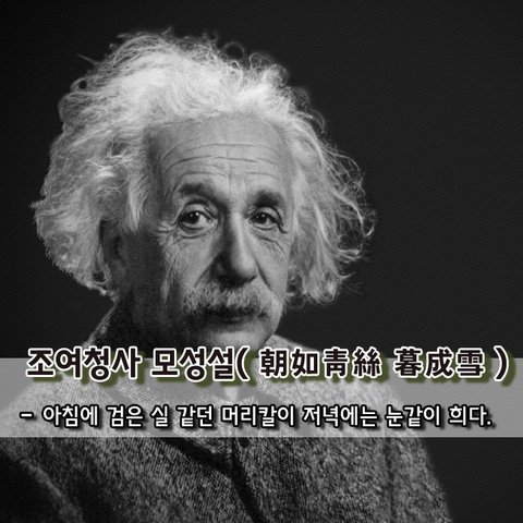 조여청사 모성설朝如靑絲 暮成雪 - 아침에 검은 실 같던 머리칼이 저녁에는 눈같이 희다.
