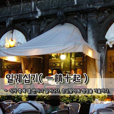 일궤십기一饋十起 - 식사 중에 열 번이나 일어나다, 손님맞이에 정성을 기울이다.