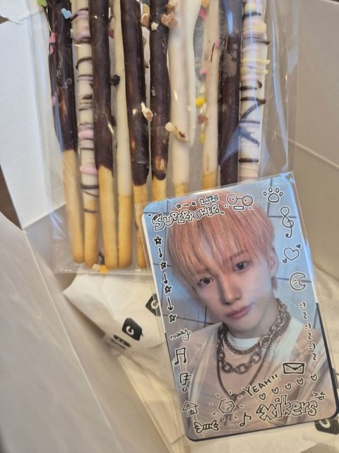 빼빼로 1600개를 새벽 4시까지 만들고 쿠키랑 에그타르트까지 박스에 담아서 팬들한테 나눠줌