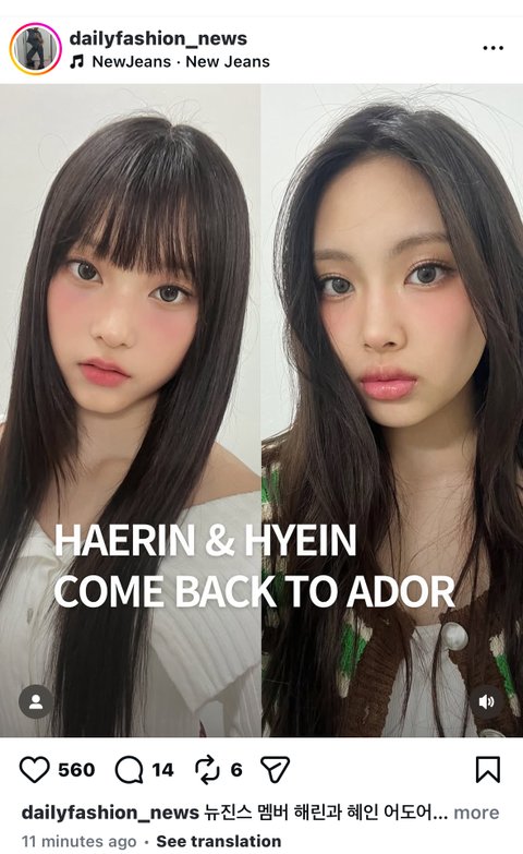 헐 뉴진스 혜인, 해린 어도어 복귀