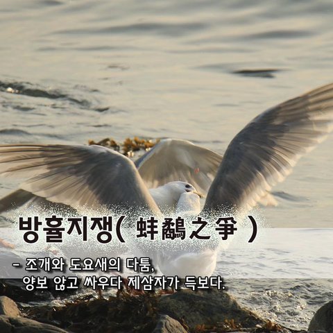 방휼지쟁(蚌鷸之爭) - 조개와 도요새의 다툼, 양보 않고 싸우다 제삼자가 득보다.