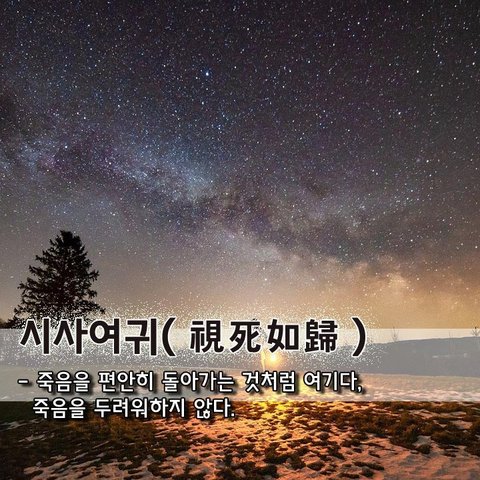 시사여귀(視死如歸) - 죽음을 편안히 돌아가는 것처럼 여기다, 죽음을 두려워하지 않다.